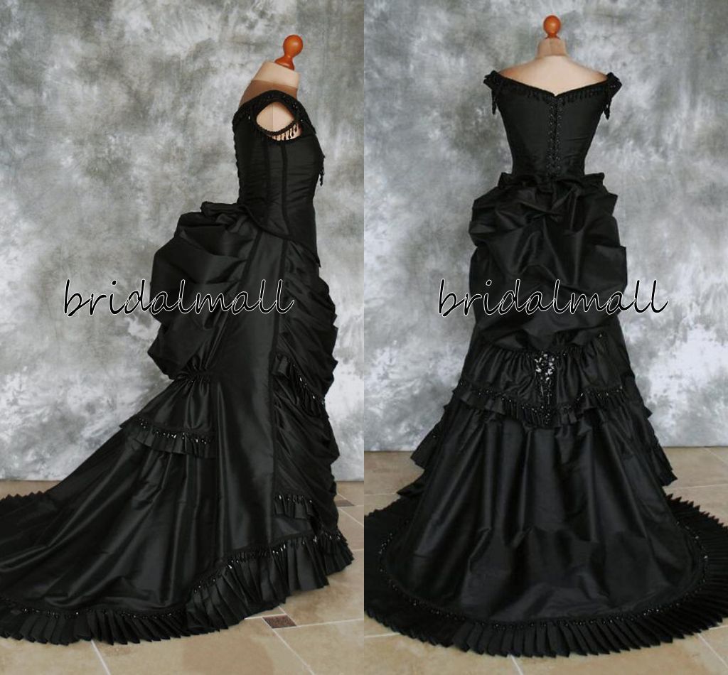 Discounttaffeta Beaded Gothic Victorian Bustle Gown With Train Vampire Ball Masquerade Halloween Black Wedding Dress Steampunk Goth 19th Century From Bridalmall 149 9 Dhgate Com