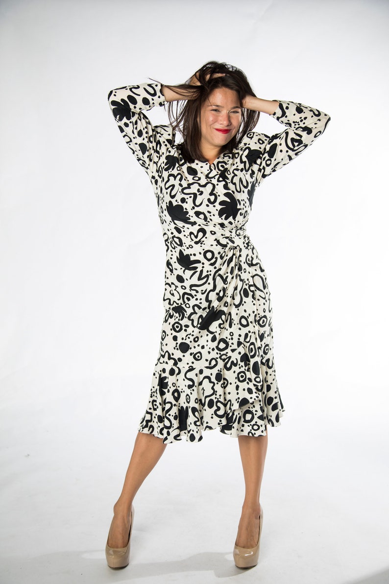 Medium Small Funky 1980s Black And White Abstract Print Wrap Dress By Lillie Rubin Large Clothing Women S Clothing Valresa Com