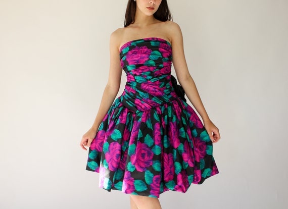 Lillie Rubin Strapless Cocktail Sheath Dress Floral And Check Pattern Vintage 1980s Clothing Women S Clothing Valresa Com